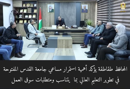 بحث محافظ سلفيت مصطفى طقاطقة اليوم الاثنين، مع د.خليل ابراهيم مدير جامعة القدس المفتوحة فرع سلفيت، سبل تعزيز التعاون المشترك،...