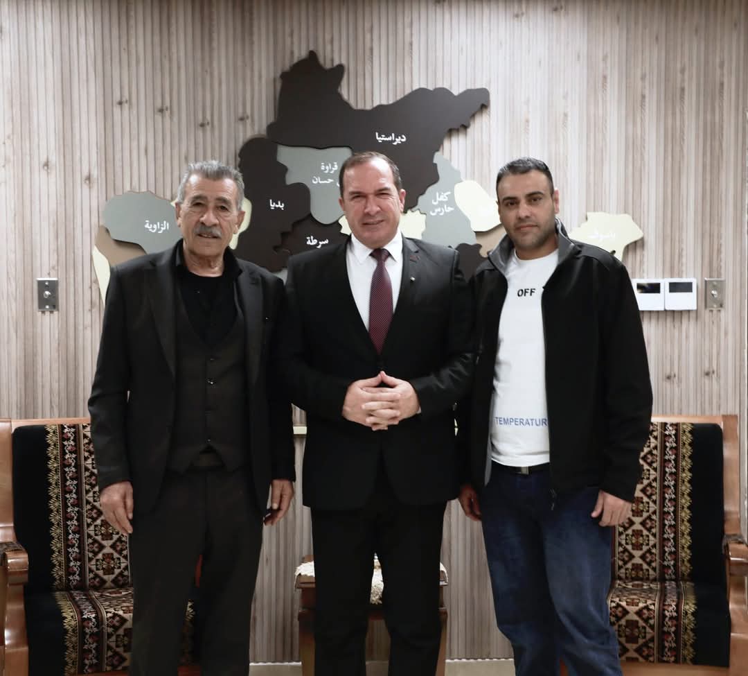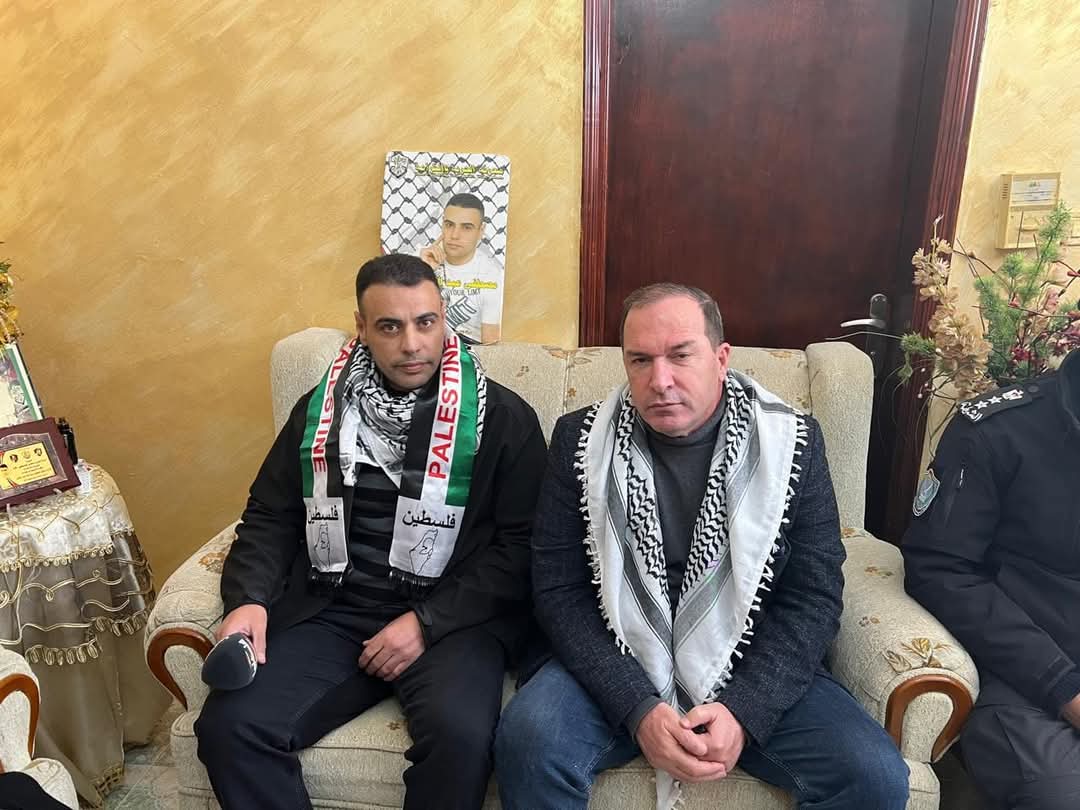 محافظ سلفيت اللواء د.عبدالله كميل على رأس وفد من المؤسسة الامنية يزور الاسير المحرر مصطفى عرار ابن بلدة قراوة بني...