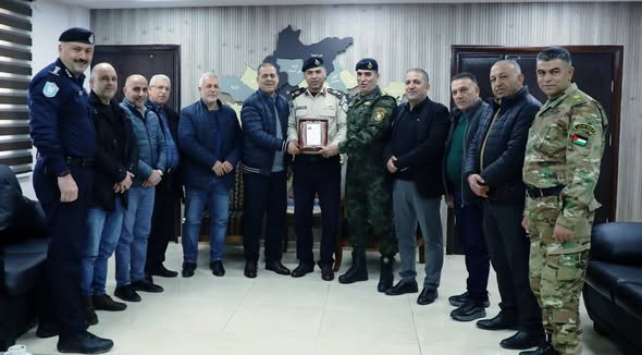 كرّم محافظ سلفيت مصطفى طقاطقة، اليوم الاحد في دار المحافظة، المقدم عثمان العريض والنقيب فتحي سلامة من ضباط مديرية جهاز...