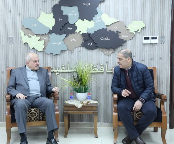 بحث محافظ سلفيت مصطفى طقاطقة، اليوم في دار المحافظة، سبل تعزيز التعاون والتنسيق المشترك مع مدير عام جهاز الأمن الوقائي...